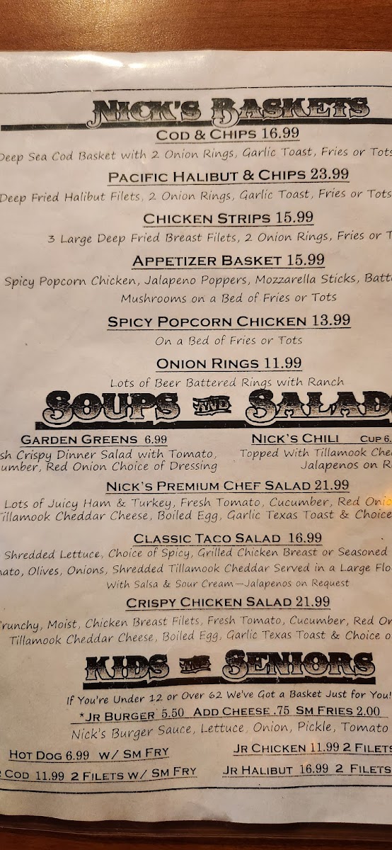 Introducing the Menu at Nick's Bar & Grill Amboy